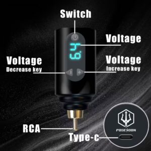 Original price was: $69.00.$29.00Current price is: $29.00. Add to cartPOSEIDON Wireless Tattoo Power Bank with LED Display – Wireless Tattoo Pen, 1200mAh Rechargeable Lithium Battery, USB Charging, RCA Connector