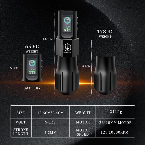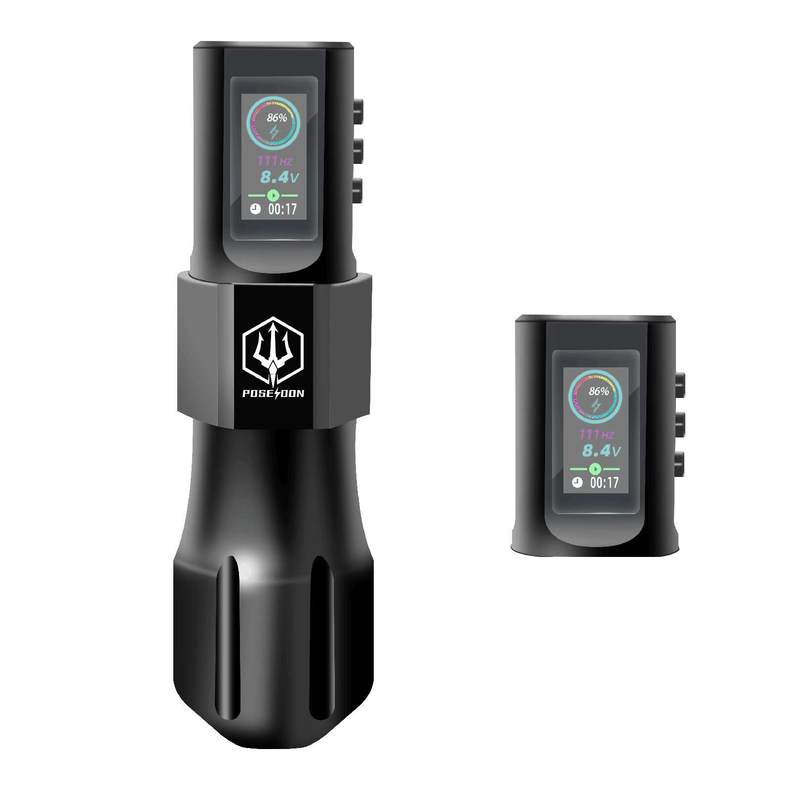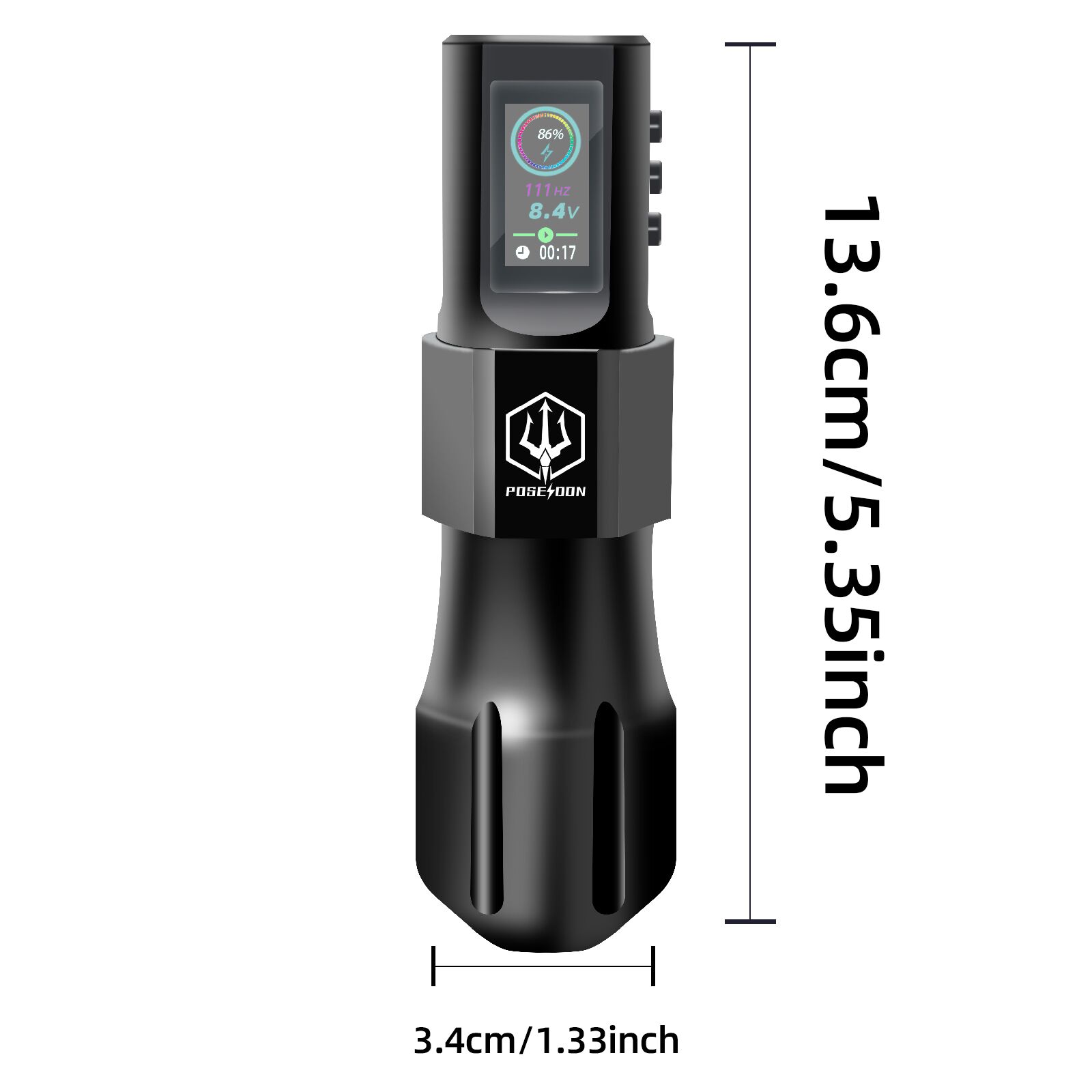 The tattoo pen has three buttons (power button, “-” , “+”) and the display screen is as follows: